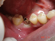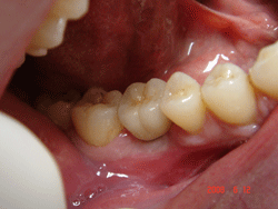 | 右下6番パーフォレーションによる骨吸収のため抜歯。両隣在歯がノンカリエスのためインプラントを選択。 |