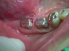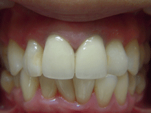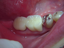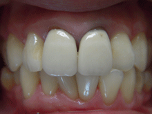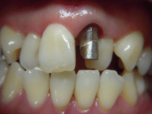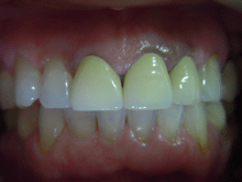 現在では土台から白い材質(ファイバーポストなど)の物を使用することにより、さらに透明感が増し天然歯に近似しています。
