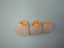 ガルバノテクニックを用いて作製されるセラミックであり、純金を用いる事によって生体親和性に優れ、歯肉にもやさしく、最適な適合精度と最適なマージン適合性が得られます。