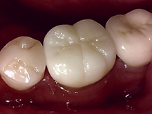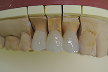 金属を使わずに全てセラミックを使用し、光の透過性を上げる事により自然な白い歯に回復させる方法です。
